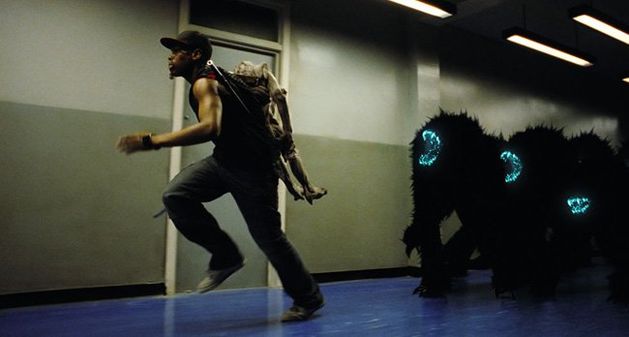 Nos encontramos con un grupo de chavales de barrio que se dedican a la droga y a atracar, y que se verán envueltos en una invasión alienígena de lo más peculiar. La película técnicamente está muy bien hecha, con un diseño de los alienígenas de lo más molón, una especie de Critters gigantes con grandes dientes brillantes, parecidos a los típicos colmillos brillantes de vampiro que venden en cualquier tienda de bromas.
