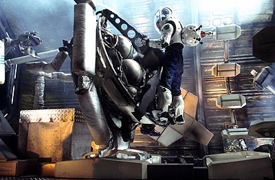 Unos primeros minutos que pretenden ser solemnes pero que solo provocan risa. Diálogos pseudo-filosóficos de la calaña más barata que este cronista haya podido escuchar. Disparates tecnológicos a gogo, incluyendo a un robot que pasa de bueno a malo solo con darle a un botón, y que encima al estropearse, oh casualidad, se convierte en una máquina asesina. Un saco de tópicos adquiridos al por mayor, incluyendo supuestas relaciones personales que el guionista se saca de la manga cuando le apetece (¿a qué viene la discusión en la que muere el copiloto? ¿de dónde sale la amistad/admiración entre el filósofo absurdo y Val Kilmer? ¿cuándo ha cambiado éste su manera de ser? ¿de dónde sale el amor entre él y Carrie Ann Moss?). Un guion espantoso, en el que parece que todo ocurra por intervención divina y en el momento más oportuno. Una secuencias de acción metidas con calzador, y encima aburridas, y encima mal hechas. Malos efectos especiales, poca espectacularidad, reparto disfuncional (personalizando, decir que Val Kilmer está espantoso)...