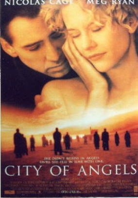 No he visto la peli original de Win Wenders en la que se basa City of angels, por lo tanto no puedo comparar. Lo mejor sin duda de la peli es la música instrumental de Gabriel Yared que es preciosa y las canciones "Uninvited" de Alanis Morissette y "Iris" de The Goo goo dolls que son impresionantes. La fotografía también es muy buena y Meg Ryan como siempre está bastante bien. El que no encaja ni a martillazos es el besugo de Nicolas Cage.