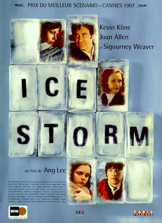 Personalmente, creo que La tormenta de hielo es la obra maestra de Ang Lee, perfecta en todos los sentidos. Joan Allen y Sigourney Weaver son las reinas absolutas de la función, atención a cuando Allen intenta robar en la tienda o en la secuencia del intercambio de parejas; y el plano de Sigourney Weaver amargada en la cama al final de la película. La fotografia es impresionante al igual que el montaje y la banda sonora. Una obra maestra imprescindible.