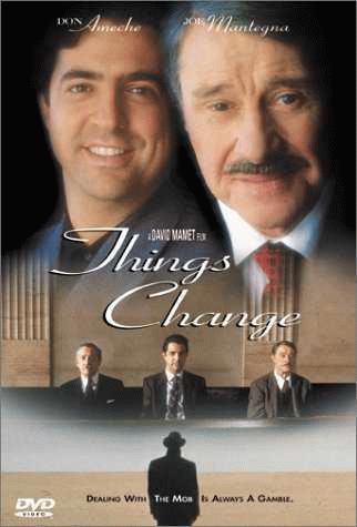Graciosa, tierna, crítica, irónica y triste película en la que David Mamet vuelve a dejar su identificable sello, garantía de cine de calidad. Con un tono amable y acertados retazos de comedia de enredos, el director plasma nuevamente su universo, su visión moral y social, individual y colectiva. Nos movemos, pues, dentro de la constante en su cine del mundo como teatro, como un juego lleno de relatividades, donde no hay lugar para lo absoluto, y donde el engaño y las identidades variables son el pan de cada día. El mundo, al fin y al cabo, como un mercado donde todo está a la venta, donde el dinero se superpone a cualquier tipo de ética. Así, el director nos presenta a dos seres, ambos hombres derrotados, pero opuestos en su concepción moral, que tendrán la picaresca oportunidad de convertirse en aparentes posesores de cargos de poder dentro de una importante familia mafiosa. Nuevamente, Mamet habla del dinero como motor del mundo; un mundo corroído por un capitalismo ciego y canibalizante, que en su crecimiento devora y aplasta a los más débiles, sin dejarles ninguna oportunidad de salir de su gris existencia. Y en este sentido, yo entiendo la película como un reverso cómico de El búfalo americano, obra teatral escrita por Mamet, pero que cambia el aire sencillo, divertido y ligerísimamente optimista de este film por un tono árido, violento, desesperanzado. La película comienza con un album de fotos que pasan. Fotos muy antiguas. Deducimos que pertenecen al pasado del inmigrante italiano que interpreta Don Ameche, que recuerda tiempos mejores, antes de que viajara a América para medrar. Pero las cosas cambian (¡qué título tan significativo y pensado!), y en un mundo ambicioso, codicioso, donde los más poderosos aplastan a los débiles, sólo queda la amistad, o lo que es lo mismo, la lealtad a la palabra dada. Eso es lo único que no cambia, el valor rígido y absoluto que guía la vida de Ameche/Johnson. Y aunque eso no lleve a los protagonistas a su anhelado triunfo, al final, es la única manera de vivir que merece la pena.