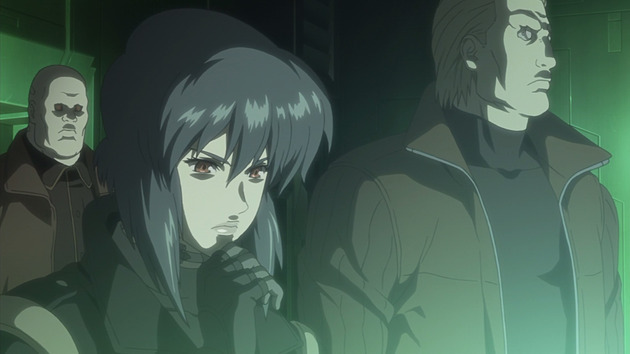 En lo negativo echo en falta más profundidad y desarrollo de los personajes, que no aportan mucho más de lo que ya sabemos. Motoko dice que navega por la red buscando algo o alguien (el momento final de intimidad entre ella y Batou es magnífico), y Togusa es ascendido a Mayor de la Sección (la escena con su hija y la pistola es igualmente genial).